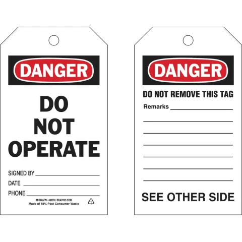 Self-Laminating tags can be personalized by writing on special instructions, hazards or warnings.
