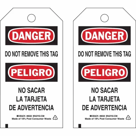 Brady 86526 "DANGER Do Not Remove This Tag" Bilingual Accident Prevention Tag, 5.75 x 3", Black, Red on White (Polyester)