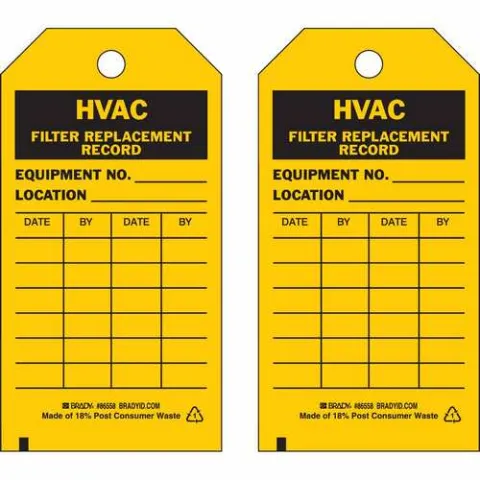 Brady 86558 Tag HVAC Filter Replacement Record Inspection B-851 Polyester 5.75"x3" Black on Yellow 2-Sided 10-Pack
