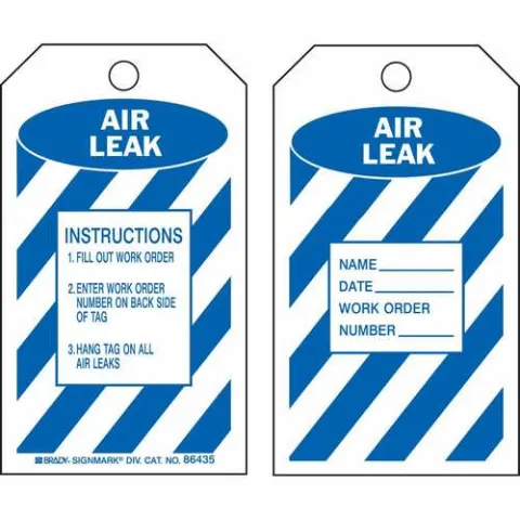 Brady 86562 Tag Air Leak Inspection B-851 Polyester 5.75"x3" Blue on White 2-Sided 10-Pack