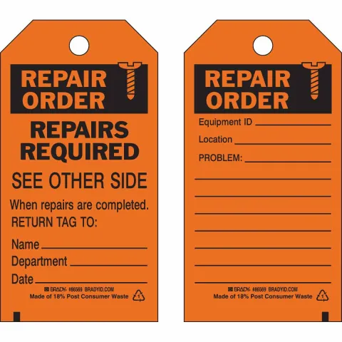 Brady 86569 "Repair Order Inspection Tags" Tags, Pack of 10 Tags