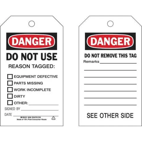 Economy Polyester (B-851) tags are perfect for marking on-the-spot warnings of dangerous conditions.