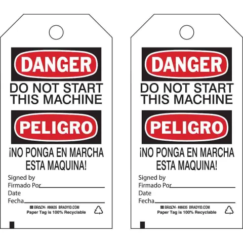 Brady 86635 "DANGER Do Not Start This Machine" Bilingual Accident Prevention Tag, 5.75 x 3" (Paper)