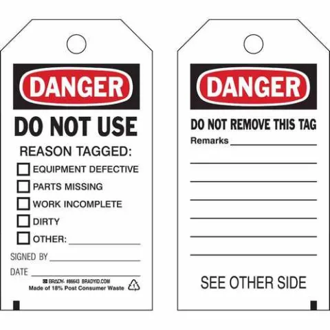 Brady 86643 Tag Accident Prevention Danger Do Not Use Reason Tagged B-853 Paper 5.75"x3" Black Red on White 2-Sided 100-Pack