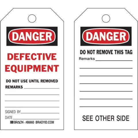 Brady 86660 Tag Accident Prevention Danger Defective Equipment Do Not Use Until Removed B-853 Paper 5.75"x3" Black Red on White 2-Sided 100-Pack
