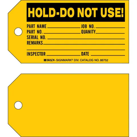 Brady 86752 "HOLD - DO NOT USE!" Production Tag, 5.75 x 3", Black on Yellow (Paper)