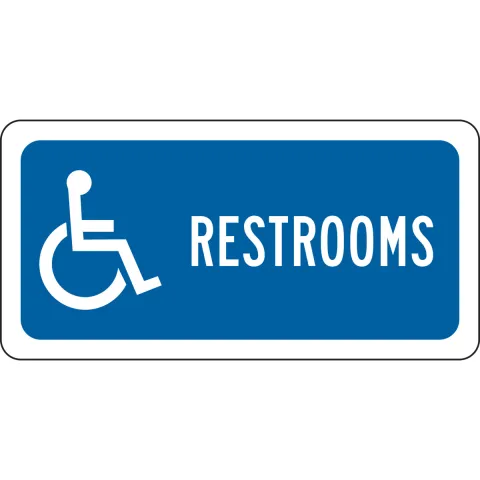 Brady 89128 "Restrooms" Sign Polyester with Polyester Overlaminate White on Blue 6" x 12"