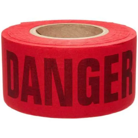 Brady 91084 Re-Pulpable Caution Barricade Tape, 3 in x 200 ft, Black on Red, Biodegradable Cotton, "DANGER" Legend