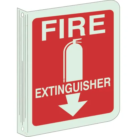 Brady 94044 BradyGlo 12 in H x 9 in W Red on Glow Phosphorescent Polyester Laminated Polystyrene Sign L-Shaped, "Fire Extinguisher"