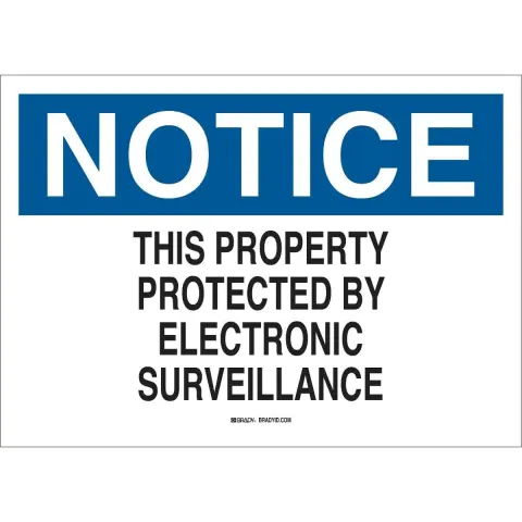 Brady 95317 "Notice This Property Protected By Electronic Surveillance" Sign Polyester with Polyester Overlaminate Black Blue on White 10 x 14 in