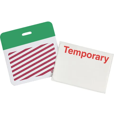 Brady 95666 "Temporary" SecurAlert Clip-On Badges Vinyl Green Red on White 2" x 3"
