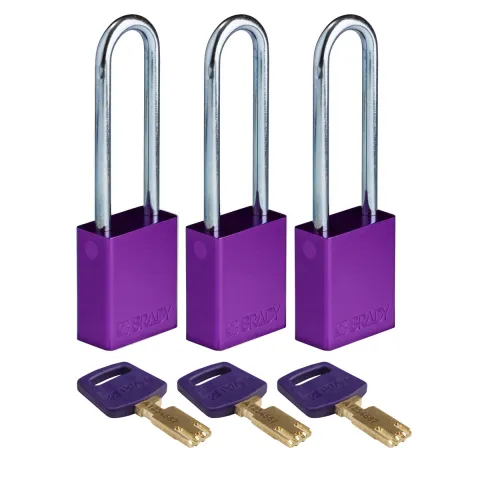 Brady ALU-PRP-76ST-KA3PK SafeKey Aluminum Lockout Padlocks, Purple