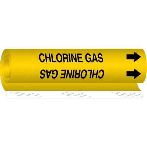 Brady CHLORGAS-OO Pipe Marker "Chlorine Gas" B-689 Coiled Plastic 0.375"-0.5" Wrap Around Black on Yellow