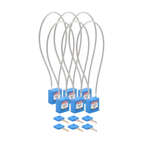 - Compact padlock body with a flexible yet durable cable shackle lets you secure multiple or hard-to-reach isolation points