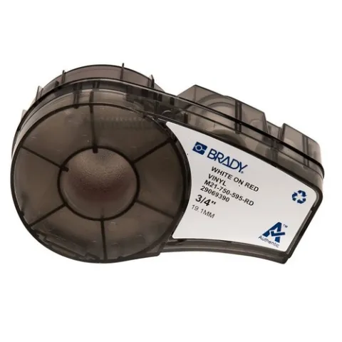 Brady M21-750-595-RD All Weather Permanent Adhesive Vinyl Label Tape with Ribbon for M210, M211, BMP21-PLUS Printers - 0.75", White on Red