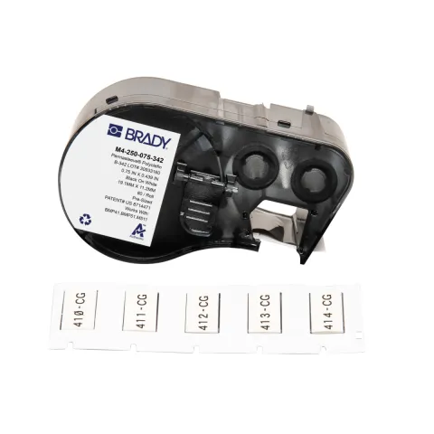 Permanently mark wires with the durable PermaSleeve® PS heat-shrink polyolefin sleeve label material (B-342). Designed for use with a durable Brady handheld label printer.