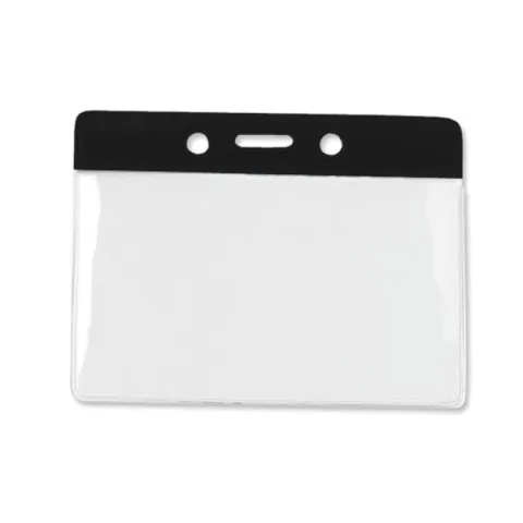 These data/credit card size holders feature a clear vinyl pocket with a color bar at the top. Slot and chain holes allow for easy attachment to lanyard or chain. Use them with the other colored holders to quickly identify employees by color of badge holder.