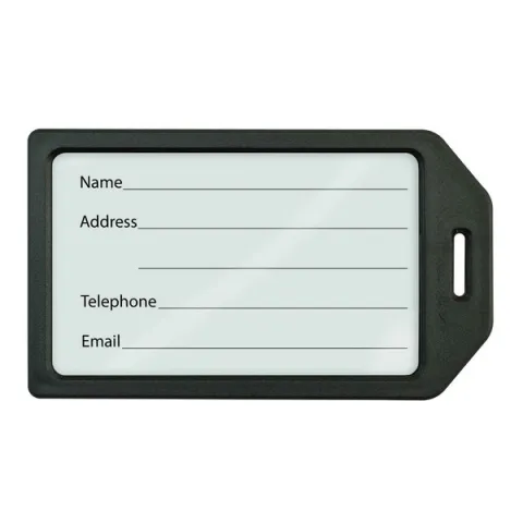 Black Rigid Plastic Luggage Tag Holder with Clear Front, Holds Standard Size Business Card 4 1/4 X 2 1/2" (108 X 64mm).