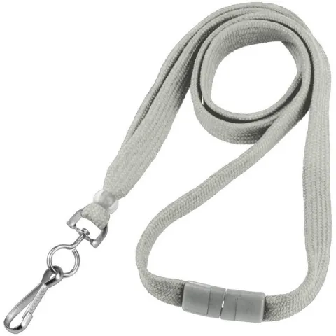 White 3/8" lanyard with breakaway and swivel hook. Flat braid polyester material with a 48 thread count for a softer more comfortable fit. Comes with a color matching breakaway and a clear plastic bead finishing option.