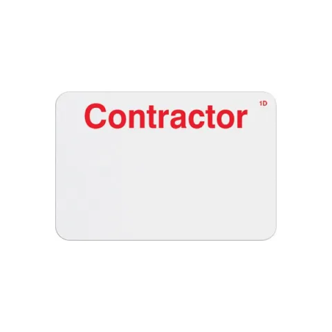 This badge front features a printed "CONTRACTOR" title and expires after a day's use (approximately 12-14 hours). The badge can be personalized by hand with a pen, pencil or marker. Please note that this badge front requires a compatible badge back for use; it is not a standalone solution. Badge measures 1 15/16" x 2 7/8".