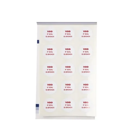 13802 0.8" Dia. Tamper Seal Vinyl Label, Red on White