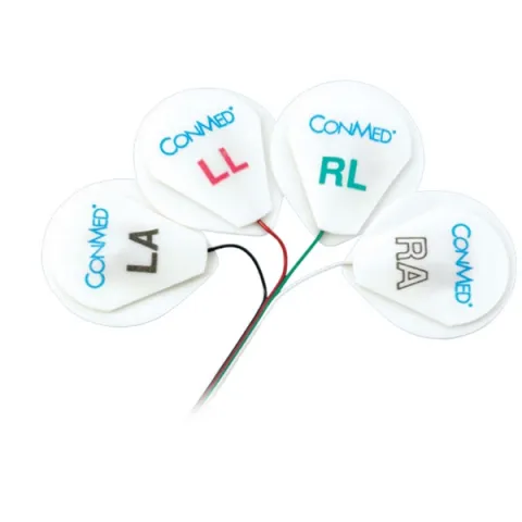 ECG Strippers 4 Lead incorporate wet gel foam electrodes with a one piece, pre-attached leadwire system to minimize the patient set-up time and to prevent leadwire tangling. Closed cell foam electrodes keeps fluids from penetrating, while the wet gel formula provides quick ECG signal retention. A pull tab makes it easy to apply and remove electrode. They feature a "strippable" leadwire construction so each leadwire can be "stripped" to desired length.