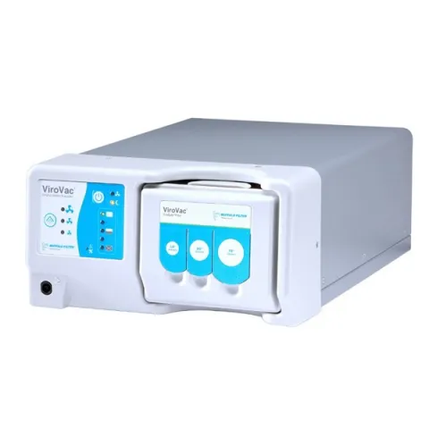 ViroVac® surgical smoke plume evacuator provides ideal flow for physician offices and outpatient surgery centers. It combines customizable (variable) filter life, a compact shelf design, 3-port filter with filter life tracking technology, while exceeding expectations for value and efficacy. Includes one filter and one footswitch.