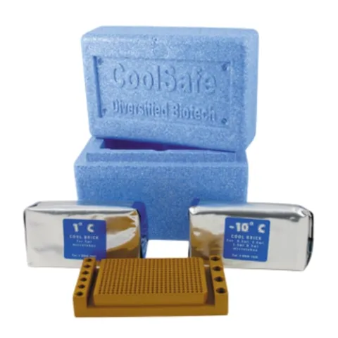 • The CoolSafe is a versitile sample cooling system that utilizes re-chargable Cool Bricks (1°C or -10°C), anodized aluminum Cooling Chambers and triple density poly styrene Cool Box, to keep a variety of sample formats cool.
