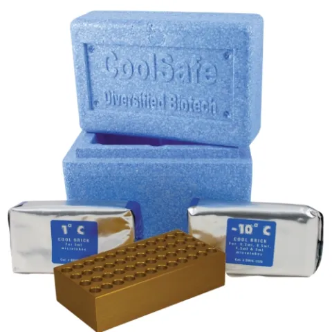 • The CoolSafe is a versitile sample cooling system that utilizes re-chargable Cool Bricks (1°C or -10°C), anodized aluminum Cooling Chambers and triple density poly styrene Cool Box, to keep a variety of sample formats cool.