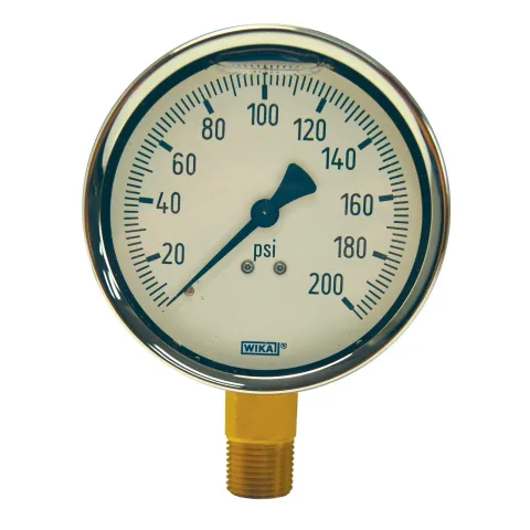 Brass Liquid Filled Gauges, 0 to 200 psi, 1/4 in NPT(M), Bottom Mount