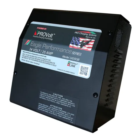 Batteries and battery chargers are systems that should work together to provide optimal performance for lifts and lift systems. When either the battery or the charger under performs the result is reduced productivity at the jobsite and increased costs relative to the replacement of batteries and failed chargers. Pro Charging System's sophisticated Eagle Performance Series line of chargers utilizes the company's proprietary Delta Volt charging technology to enhance both the performance and life of batteries. The Eagle Performance Series of chargers utilizes intuitive technology that enables simple plug and play installation.