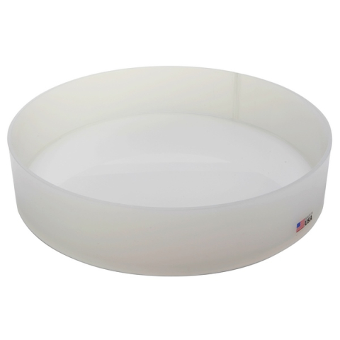 Fabricated round plastic trays of polypropylene are heavy wall (3/16"), corrosion resistant and may be autoclaved. Fabricated trays of polyethylene are heavy wall (3/16"), corrosion resistant and durable. Sizes: 15 x 3". Dimensions listed are inner (I.D.).