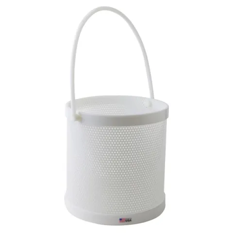 HDPE fabricated dipping baskets are made with 1/8" thick walls, 3/16" diameter perforations on 5/16" centers. Made from high density polyethylene. Takes 140°F on a continuous basis or more for shorter periods (up to 160°F). Supplied with sturdy swinging handle - a unique feature allowing easy storage and loading.