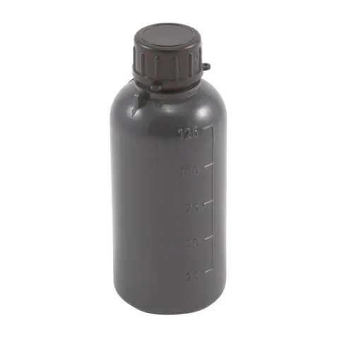 These opaque leakproof bottles are excellent for storing light sensitive materials, either liquid or solid. Body in Polyethylene (PE); cap in Polypropylene (PP). A LDPE neck insert plug provides maximum security. The easy grip PP screw closure contains tag holes and may be wired securely to either of 2 shoulder holes. Sloping shoulders reduce any possibility of residue deposits. Suitable for food grade products.