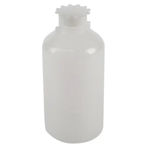 Graduated plastic Plug Seal Bottle comes with narrow neck and will withstand considerable pressure. Secured by tagging points on bottle and cap. Confidential notes can be placed in the space between insert sealing plug and cap.