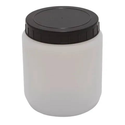 Cylindrical HDPE jars are supplied with an insert and PP cap. Thanks to the large neck, these plastic container jars are suitable for powders and solid specimens.