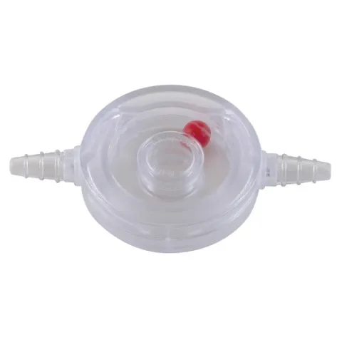 This flow indicator is transparent, leak-proof, ultrasonically molded and fitted with a polypropylene ball. It allows an immediate visual indication of gas or liquid flow by means of the ball's rotation. The speed of the ball's rotation is dependent upon the flow of velocity.