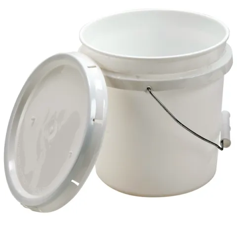 Heavy-duty plastic pails, molded of high density polyethylene. Rigid construction. Steel bail handle with plastic hand grip. Snap-on cover is included.