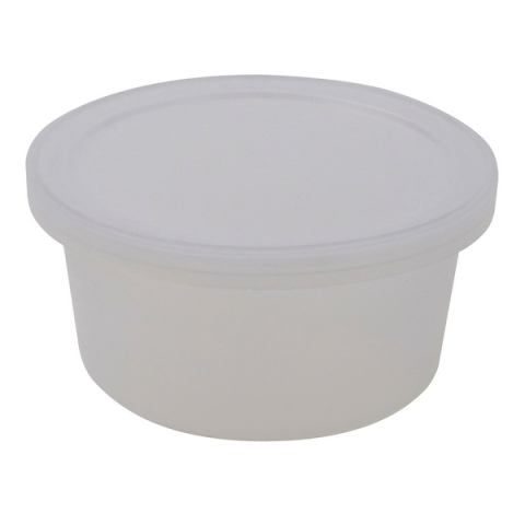 Container are made from PPCO, a copolymer of Polypropylene and High Density Polyethylene. PPCO offers a product with a higher temperature range while maintaining good impact strength. Recycling code is "5" for PP and the HDPE recycling code remains "2".