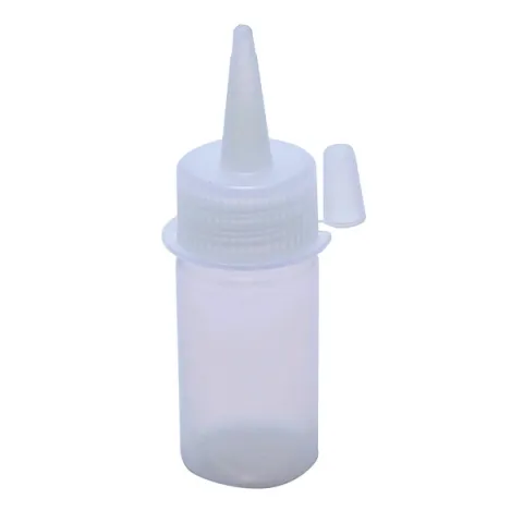 The white polyethylene screw cap on the Dropper Cap Bottles has a pivoting nozzle which can be raised to give a direct jet of liquid as the bottle is squeezed. The sealer cap low density bottles with polyethylene dropper closure feature a captive cap.