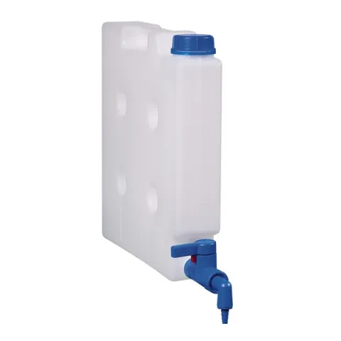The compact jerrycan is ideal as a space-saving canister with its width of 6.5 cm. Different liquids can be stored and decanted in a small space. The compact jerrycan can also be stored lying on its side e. g. in a refrigerator. It is very stable due to ribbed structure and thick sides. The compact jerrycan can also be used as a settling canister.