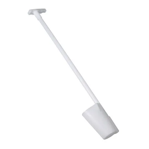DispoLadle is a sampling scoop specially designed for disposable use. The scaled scoop with embossing can be used for measuring. It shows contents in increments of 10 ml, up to 200 ml. An ergonomic handle and a spout on both sides for right or left-hand operation make handling simple and easy.