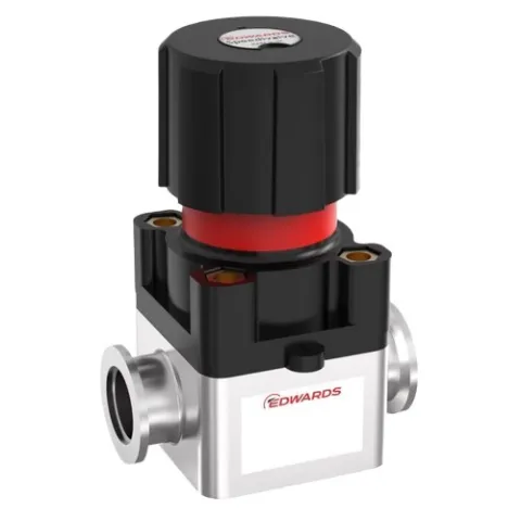 Edwards SP Speedivalves are diaphragm sealed in-line, isolation valves. The construction consists essentially of a flexible elastomeric diaphragm which is sealed onto a lightly polished seat by a screw thread mechanism. The mechanism is isolated from the system by the diaphragm resulting in an extremely rugged and ‘dirty' system tolerant valve.