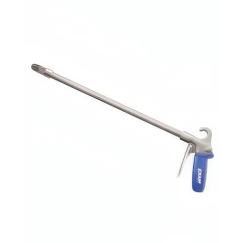Adding an Aluminum Extension Pipe to Soft Grip Safety Air Gun makes it easier to reach into deep machine spaces and reach high spots. The ergonomic design keeps the hand in a comfortable position and incorporates a large trigger that permits operation with one or more fingers.