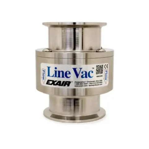 - EXAIR's compressed air operated Sanitary Flange Line Vac connects to standard clamp style flange fittings to create a powerful in-line conveyor.