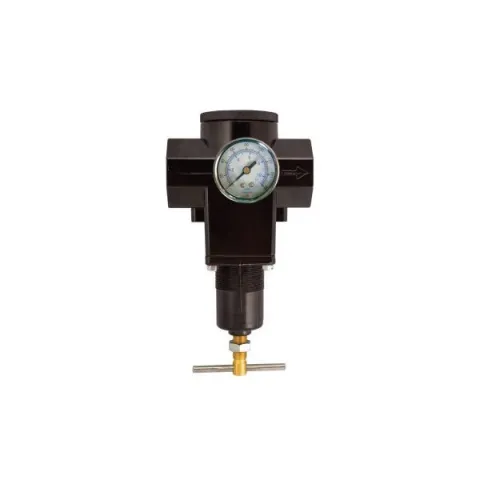 EXAIR's Pressure Regulators permit easy selection of an operating pressure that will allow the air product to work properly without using excessive amounts of compressed air. Reducing the air pressure from 100 PSIG to 80 PSIG reduces air consumption by almost 20% and reduces required input power by 10%. Many sizes are available and a pressure gauge is included.
