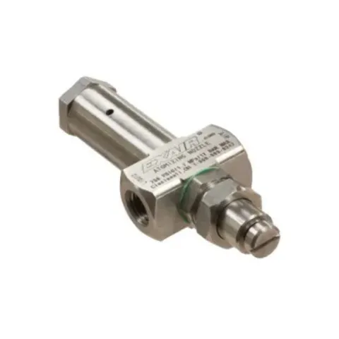 EXAIR's 1/4 FNPT no drip internal mix 360° nozzles stop liquid flow whenever air flow isn't present, which conserves expensive liquids and prevents ruined product finishes due to drips. They are designed for applications where the spray pattern must be oriented away from the nozzle in all directions. These nozzles are ideal where a smooth, even coating is needed on the inside of pipe or similar ductwork. They also work great for operations where a mist over a broad area is needed, such as dust suppression, humidification and cooling. For pressure fed applications not requiring independent air and liquid control.