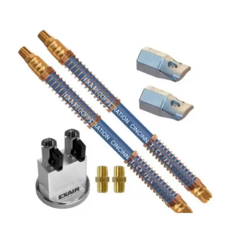 The 1" High Power Flat Super Air Nozzle with Stay Set Hose and Mag Base includes EXAIR's Flexible Stay Set Hose for applications where frequent repositioning is required and a Two Outlet Magnetic Base for firm attachment to metallic machinery. EXAIR's 1" High Power Flat Super Air Nozzles produce a flat 1" (25mm) wide airstream with a blowing force of 1 pound. The unique design of this super-efficient nozzle makes it an ideal fit for both tight spaces and tight budgets. It uses EXAIR's patented technology to maximize entrained airflow while reducing noise levels.