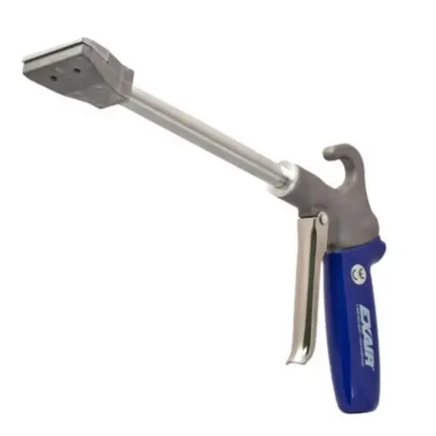 Adding an Aluminum Extension Pipe to EXAIR's Soft Grip Safety Air Gun makes it easier to reach into deep machine spaces and reach high spots.EXAIR's Soft Grip Safety Air Gun is ideal for hours of continuous use without fatigue. The ergonomic design keeps the hand in a comfortable position and incorporates a large trigger that permits operation with one or more fingers. The durable cast aluminum body is suited for rugged industrial use and includes a convenient hanger hook for easy storage. These guns with EXAIR engineered nozzles minimize compressed air use, maintain OSHA pressure standard 1910.242(b) and reduce noise exposure by remaining under OSHA standard 29 CFR 1910.95(a) decibel limits.