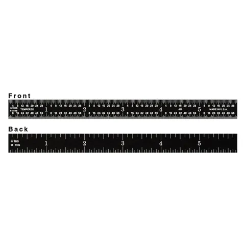 - 4R inch graduations are in 8ths and 16ths on one side; reverse side of the rule is in 32ths and 64ths.